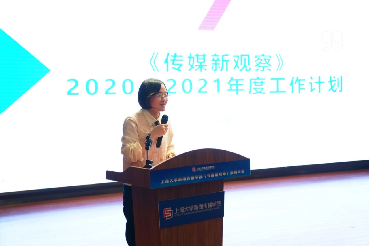 开场,一段《传媒新观察》回顾视频将现场带回过去的温暖与感动。《传媒新观察》前任社长刘歆妍作《传媒新观察》2019-2020年度工作总结。过去的一年里,《传媒新观察》总阅读量突破13.6万人次,单篇最高阅读量破5.2万,关注量净增长逾2000,取得了不俗的成绩。她表示,《传媒新观察》正在不断突破自身,选题关注社会,运营多平台多形式,全面向专业媒体靠拢。