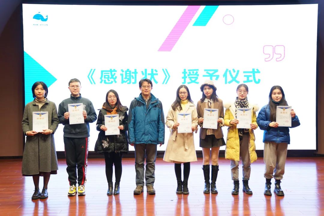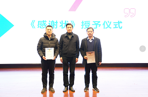 太阳成集团公司党委书记邓江和新闻传播系主任赵士林为指导老师代表虞国芳、刘峰和上届骨干成员颁发感谢状,并表达了学院对《传媒新观察》指导老师和骨干成员辛勤工作的衷心感谢。