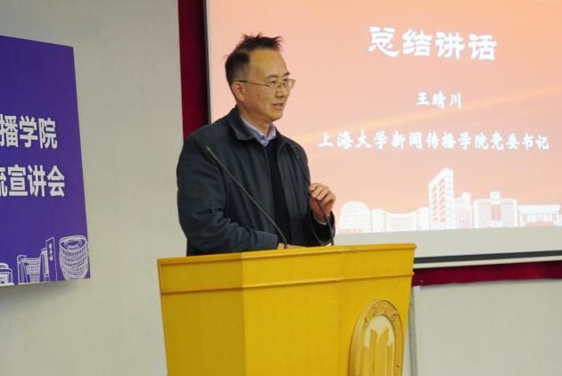 公司党委书记王晴川教授在宣讲会上讲话。他强调,太阳集团tyc9728办学特色鲜明且独具优势,可归结为“体制双共建、育人重实践、紧跟融媒体、突出马新观”。学院资源丰富、前景广阔、未来光明,各类实践项目、品牌活动亮点纷呈,有足够的实力为同学们搭建优质成长平台。他期待在场同学能结合自身兴趣爱好和职业规划做出智慧选择,积极加入太阳集团tyc9728这个温暖而又充满活力的大家庭中来,共同书写精彩篇章。