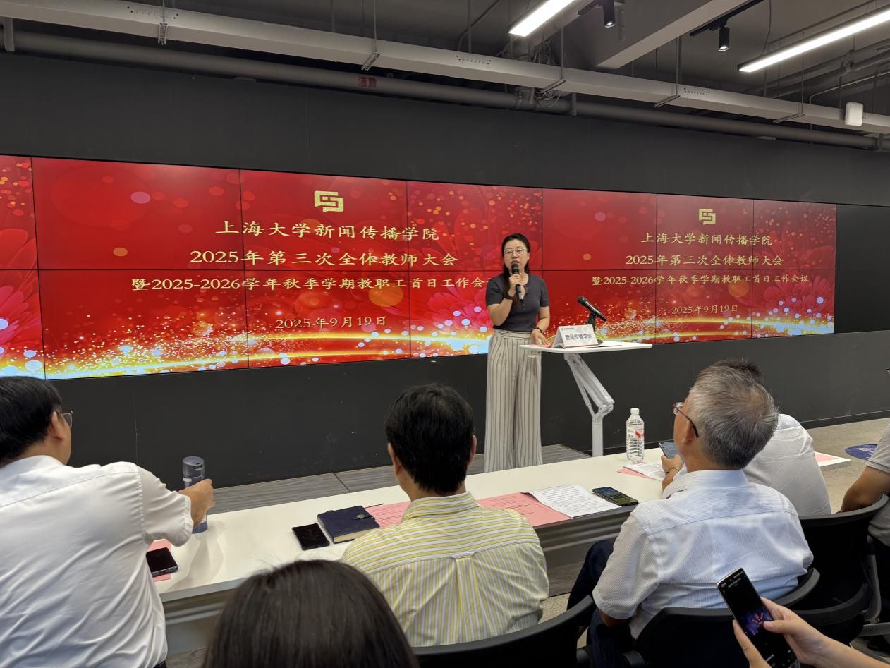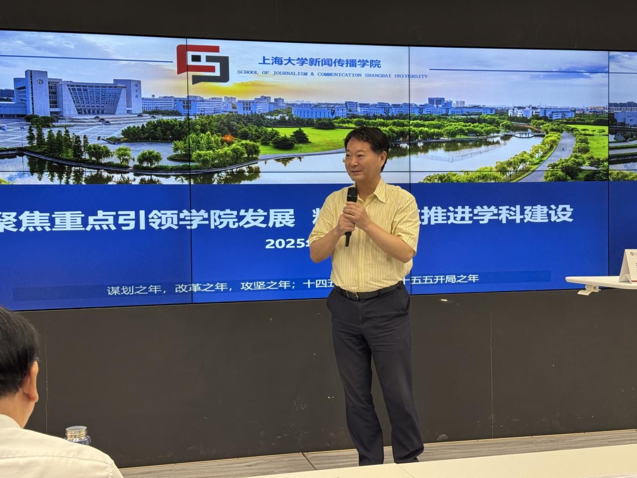 公司党委副书记、经理严三九作了题为《聚焦重点引领学院发展,精准定位推进团队建设》的报告。报告全面分析学院的中长期规划以及学科发展规划,学院在原有媒介与江南文化研究的基础上,重点布局了马克思主义新闻观和智能传播学科发展方向,尤其智能传播方向,在人才培养、科学研究以及社会服务和社会保障方面创立了“十九个全国第一”。他强调,下半年学院将系统总结“十四五”建设经验,科学编制“十五五”规划,扎实推进人才培养、团队队伍、科学研究、基地建设等重点工作。严三九经理对全体教师的辛勤付出表示衷心感谢,希望大家再接再厉,共同开创学院发展新局面。