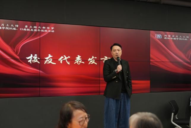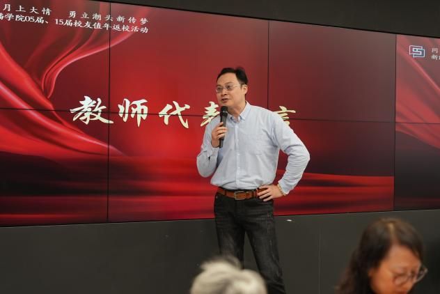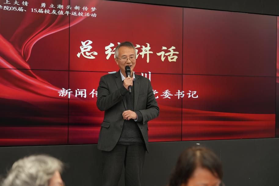 员工分享环节,2005届员工代表朱超明深情回顾了求学岁月,感恩母校培养,并表示将积极支持学院发展。同届员工印济良分享了员工间同心互助的温暖故事,呼吁新传员工加强联结、凝聚力量、携手前行。