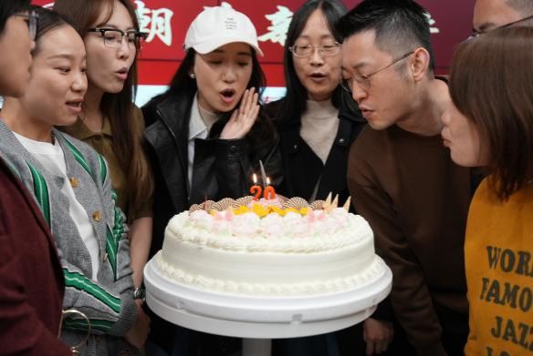 温情环节中,公司党委副书记、副经理王智君与智能视听系主任虞国芳为员工佩戴院徽;广告学系主持工作副主任刘志杰、新闻传播学系副主任单凌代表学院向员工赠送文创作品。随后,特制纪念蛋糕亮相,象征着学院与员工之间绵长深厚的情谊。师生代表共同切分蛋糕,将现场气氛推向温馨的高潮。
