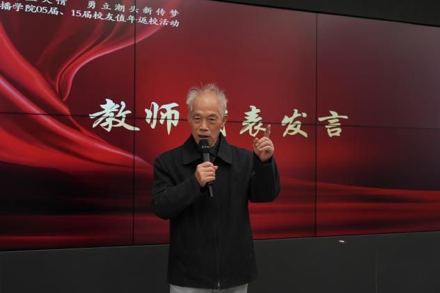 原新闻传播学系主任黄炜老师深情回顾了学院从艰辛创业到独立发展的历程,言辞间满怀感慨与自豪。2015届新闻学班主任尤杰老师以简短真挚的话语,表达了对学子们的长久牵挂,温情动人。
