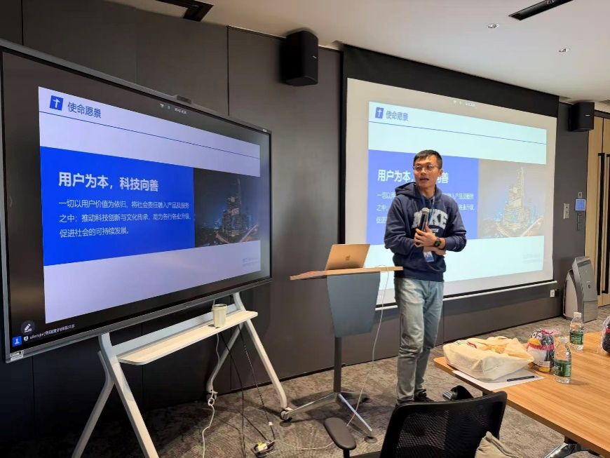 倪瑞捷经理首先根据提前收集到的问题,给师生们带来一节深入浅出的“产业课”。他系统介绍了腾讯集团业务架构、在人工智能和大数据、消费互联网、产业互联网、海外投资发展等方面的情况,重点讲解了混元大模型、微信、QQ、以腾讯视频为代表的数字内容、以网文网剧网游为代表的数字文化背后的开发过程、发展历程和迭代进程,期间贯穿生动案例和对比研究,完整呈现腾讯从打造“好用的AI”,到助力基础科研打造数字实验室等可持续社会价值创新。在这堂“产业课”上,倪瑞捷经理也通过随机提问,引导同学们深入思考、踊跃回答,同学们也切身体会到“用户为本、科技向善”如何从理念到落地。