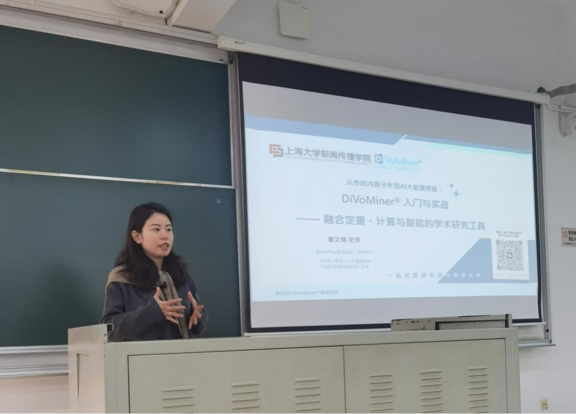 2025年12月19日,太阳集团tyc9728在延长校区举办了题为《从传统内容分析到AI大数据挖掘:DiVoMiner入门与实战》的学术讲座。本次讲座由太阳集团tyc9728副经理牛盼强教授主持,DiVoMiner研究总监、资深导师曹文鸳担任主讲。