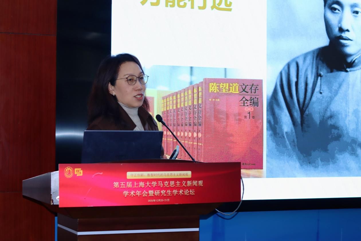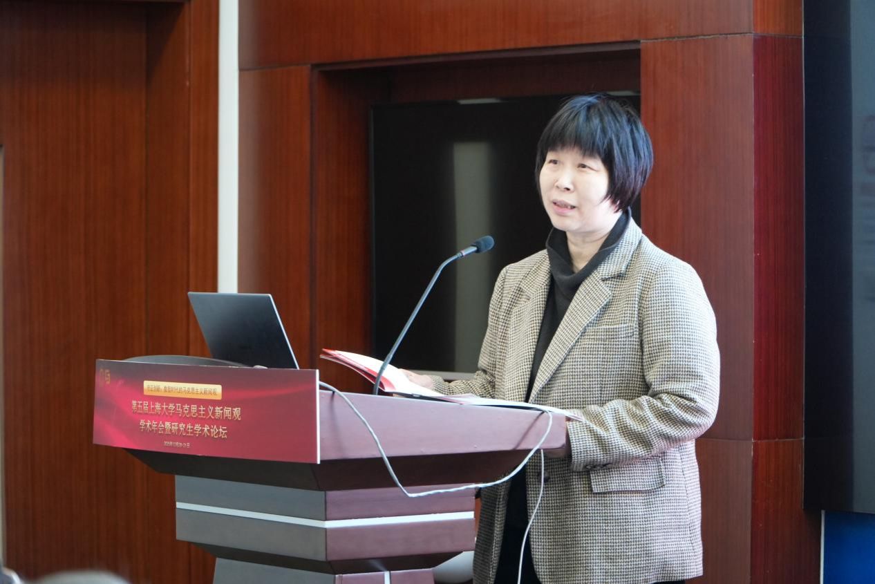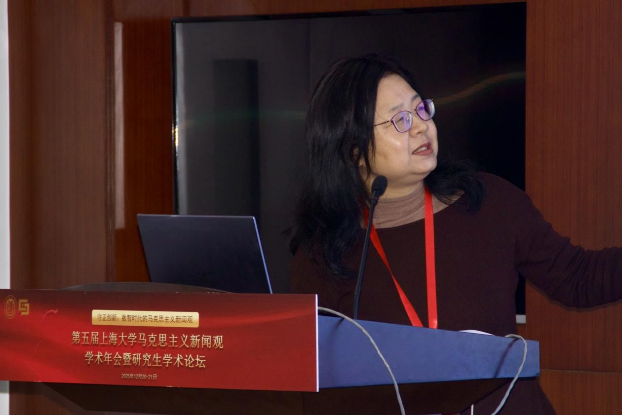 复旦大学马克思主义新闻观教学与研究基地主任马凌教授介绍了复旦大学在红色文化传承与课程体系建设方面的探索经验,强调将红色新闻传统系统融入新闻传播人才培养的重要意义。