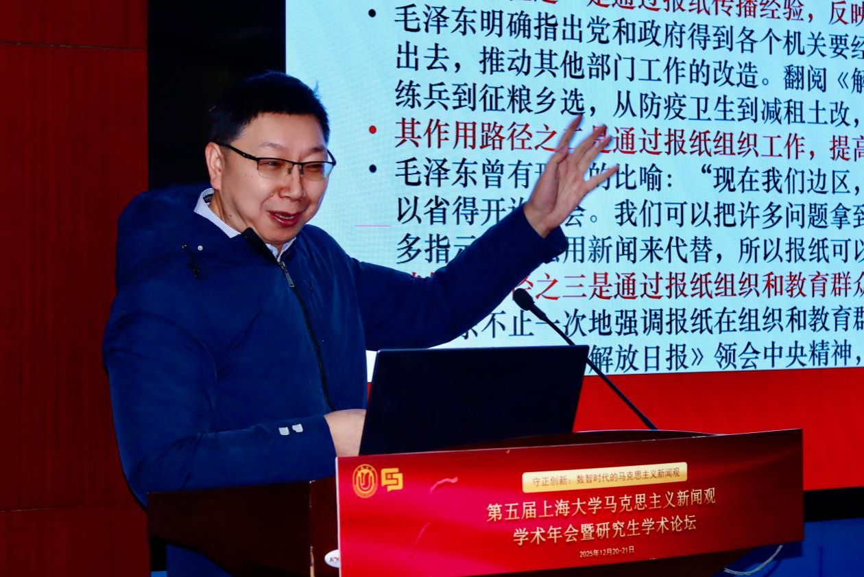 中国人民大学马克思主义新闻观研究中心主任邓绍根教授论述了抗战时期毛泽东“利用报纸做工作”理念的历史生成过程,强调了作为组织者的党报的理论内涵与实践指导。