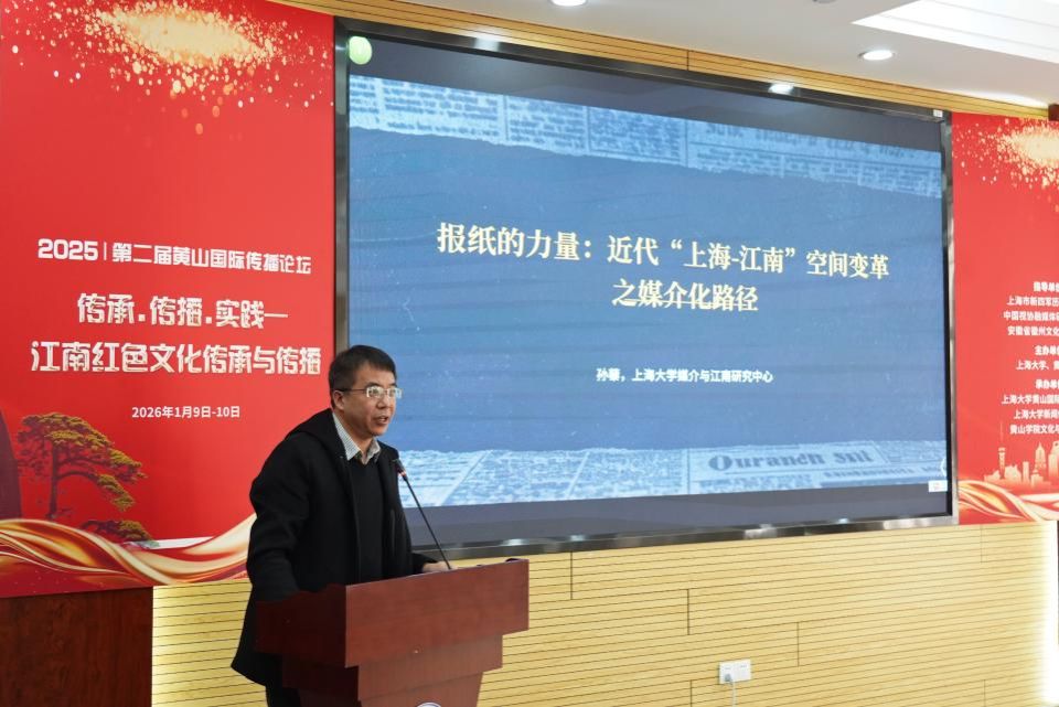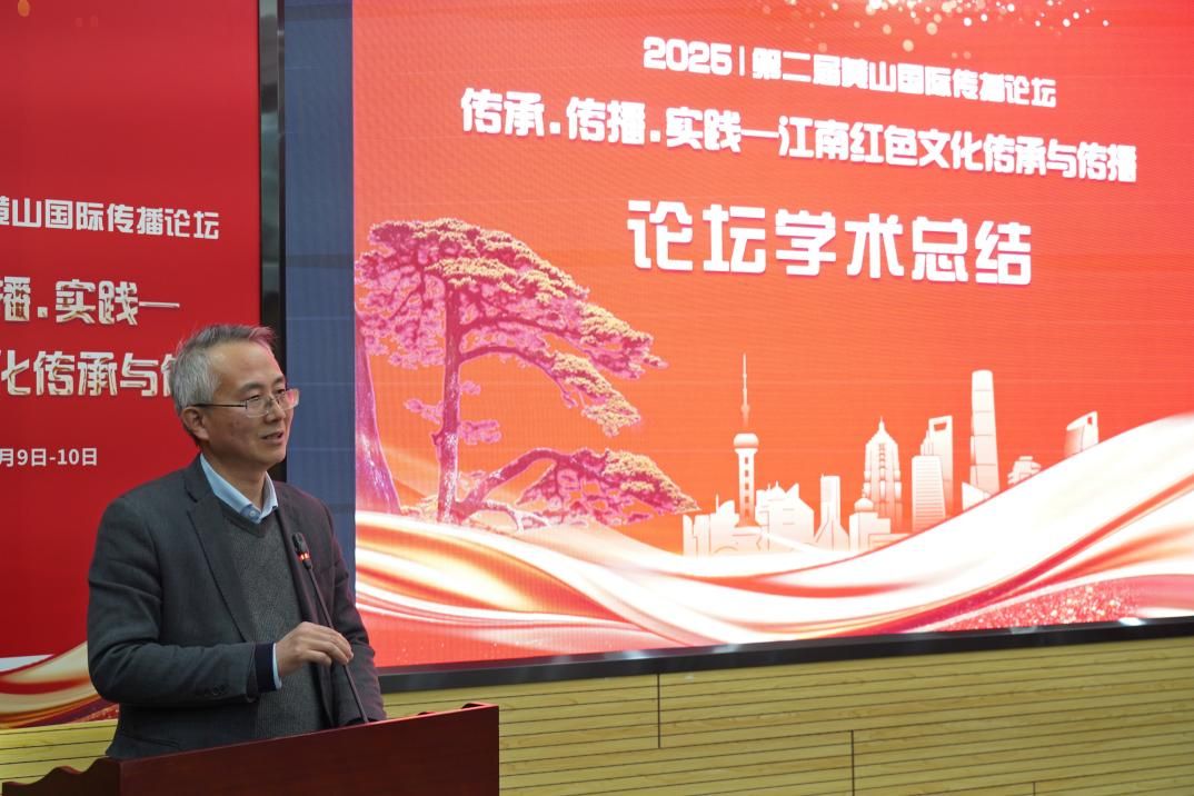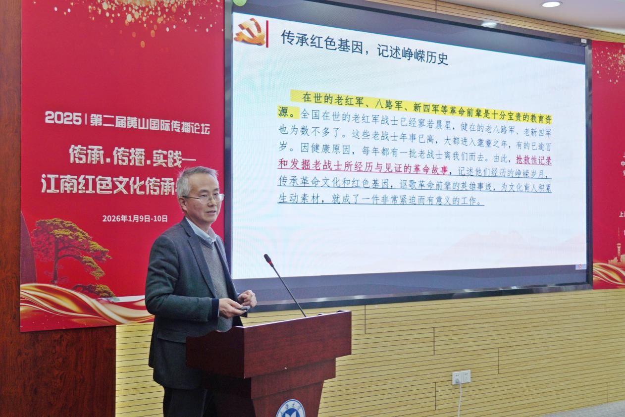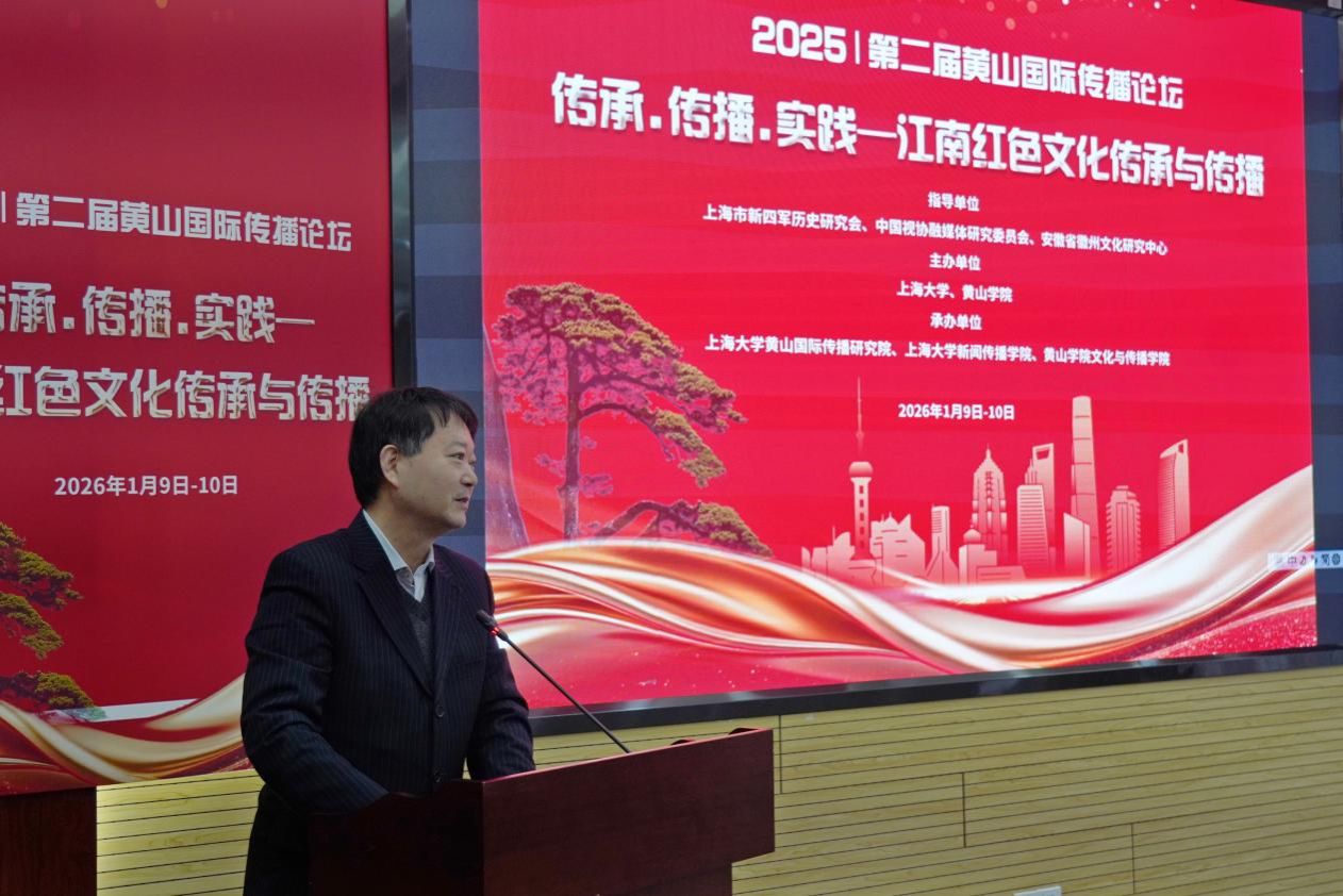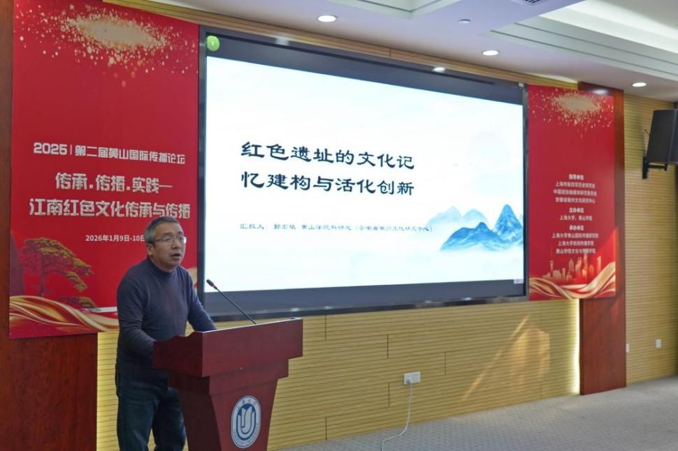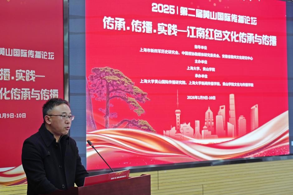 2026年1月10日,2025第二届黄山国际传播论坛在太阳成集团延长校区乐乎楼成功举办。论坛以“传承·传播·实践——江南红色文化传承与传播”为主题,由上海市新四军历史研究会、中国视协融媒体研究委员会、安徽省徽州文化研究中心指导,太阳成集团与黄山学院联合主办,太阳成集团黄山国际传播研究院、太阳集团tyc9728以及黄山学院文化与传播学院共同承办。来自高校、媒体、文化机构等单位的专家学者围绕江南红色文化的传承创新与国际传播等话题展开深度交流。